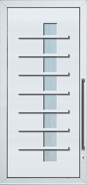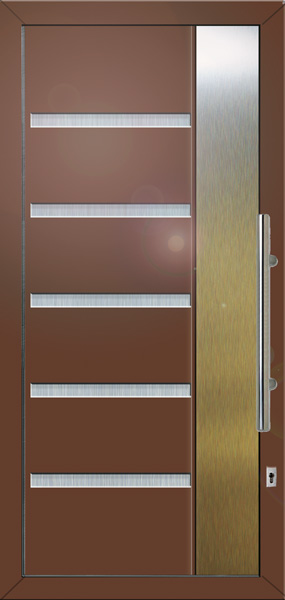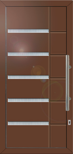 Drzwi wejściowe PCV – bogata gama kolorystyczna profili, praktycznie nieograniczone możliwości konstrukcyjne, możliwość doboru różnych wypełnień, sprawiają, że możecie państwo stworzyć upragnione wykończenie stylizacji domu zgodne z waszym gustem i zamierzeniem. Jednocześnie dbając o państwa komfort zapewniamy drzwi o wysokim stopniu bezpieczeństwa i ochrony przed hałasem jak również niekorzystnymi warunkami pogodowymi. Wielokomorowa zabudowa o głębokości 70mm oraz zastosowanie progu drzwiowego z zakładką termoizolacyjną sprawiają, że nasze drzwi posiadają bardzo dobre parametry izolacyjności termicznej. Duże komory wzmocnień pozwalają na zastosowanie zbrojeń gwarantujących odpowiednie parametry statyczne i wytrzymałościowe. Niski próg drzwiowy zapewnia komfortowe wchodzenie i wychodzenie. Proponujemy również drzwi z systemem bezprogowym.