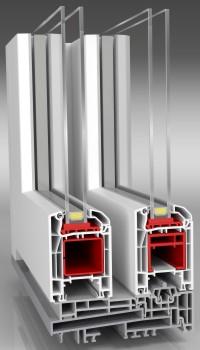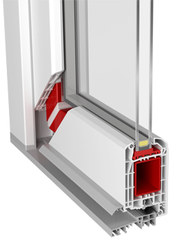 System posiada trzykomorową konstrukcje profili z rowkiem okuciowym w standardzie "euro" oraz rowkiem okuciowym stosowanym w oknach i drzwiach balkonowych z profili