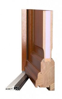 - wiele wariantów wykonania skrzydeł drzwiowych: z kopniakiem (szeroką belką)lub skrzydłem ciętym pod kątem 45 stopni, bez progu lub z progiem