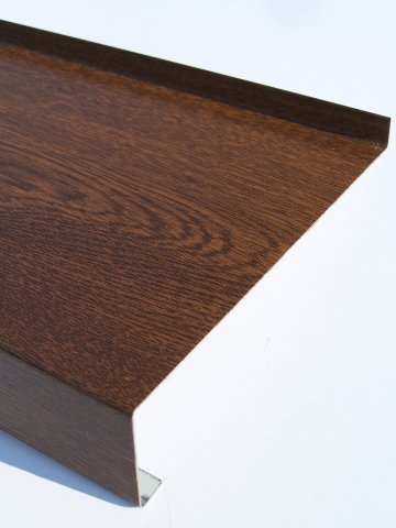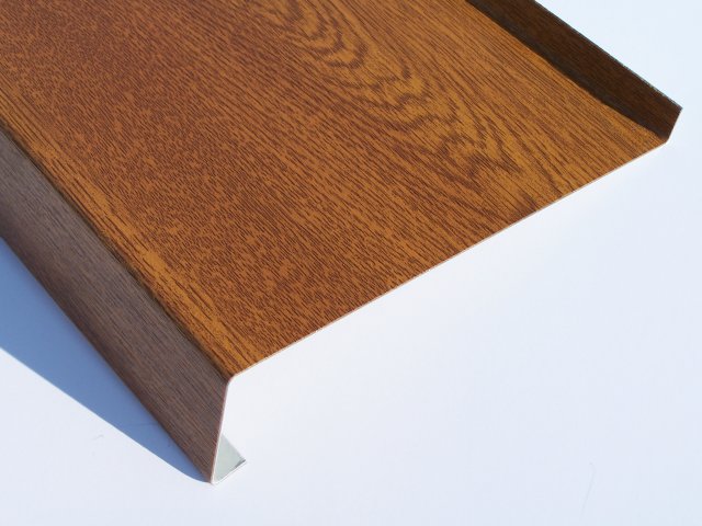 Parapety wykonane są z blachy stalowej lub aluminiowej okleinowanej folią PVC drewnopodobną w procesie produkcji blachy w hucie. Zabezpieczeniem parapetów jest powłoka cynku chroniąca blachę stalową przed korozją oraz w/w folia drewnopodobna, która jest odporna na czynniki zewnętrzne oraz promieniowanie UV. Dodatkowo zabezpieczone są folią ochronną (polietylen).